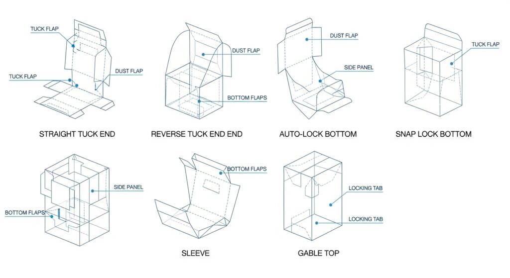The “style” of a folding carton dictates how the paperboard is cut, creased, and glued. This structural blueprint defines the box’s integrity. A cosmetic brand requires a different structural style than a heavy electronics manufacturer. Understanding the nuance of these styles allows procurement managers to balance material usage with structural performance.